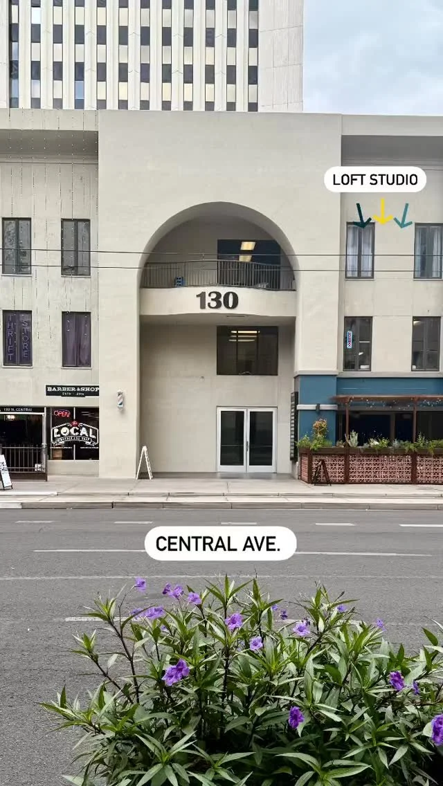 Studio is located on the third floor of 130 N. Central Ave., in the heart of Downtown Phoenix. One and a half blocks north of City Scape, and two blocks west of the Phoenix Convention Center.